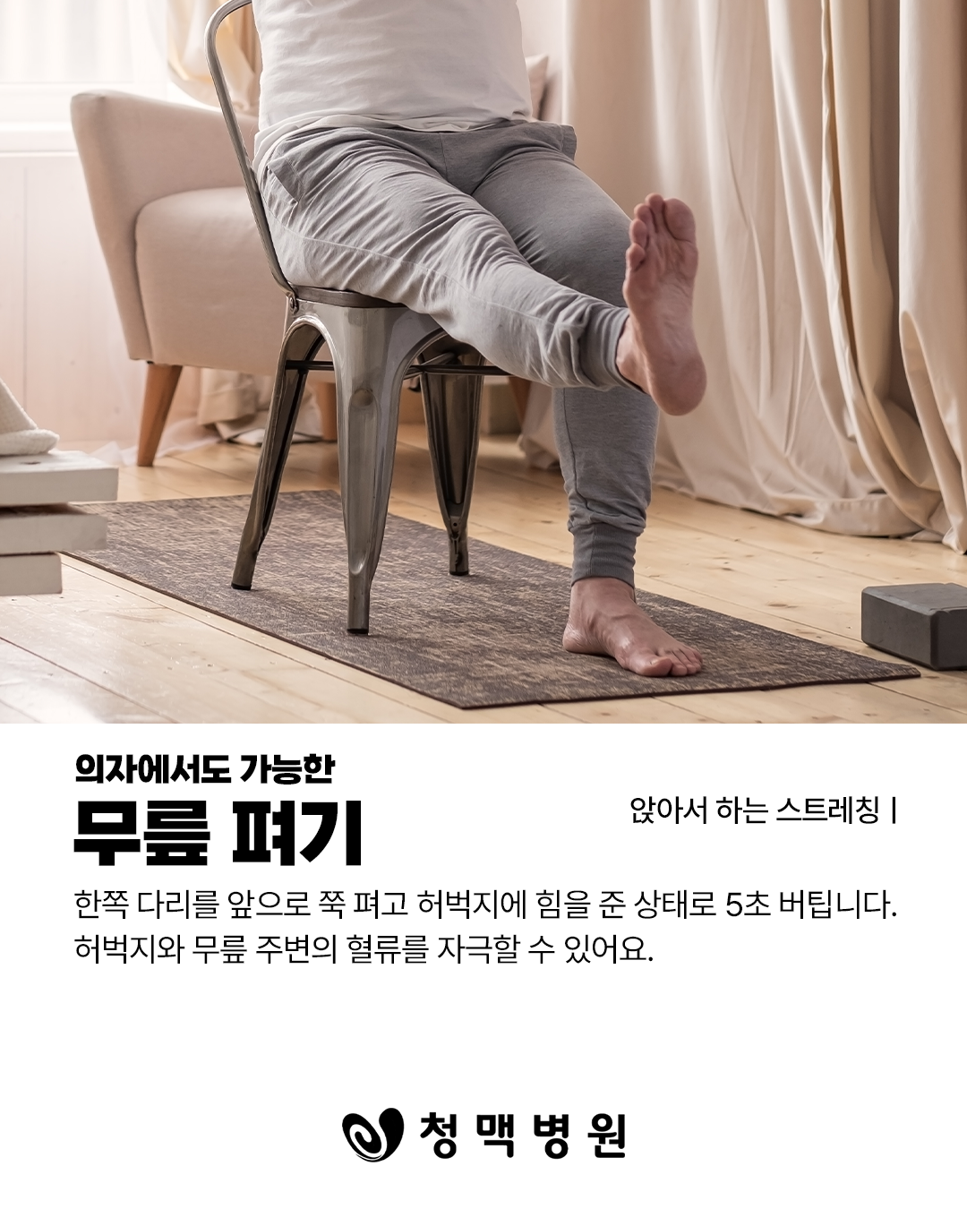 허벅지와 무릎 주변 혈류를 자극해 다리 무거움을 완화하는 데 도움이 됩니다.